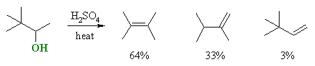 3,3-dimethyl-2-butanol dehydrates to give mainly 2,3-dimethyl-2-butene