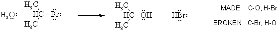Now let's look at the curly arrows for another NUCLEOPHILIC SUBSTITUTION reaction, but this time it's a little more involved.