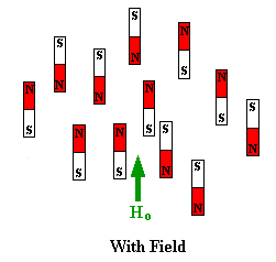 tiny bar magnet. In the absence of a magnetic field, these are randomly