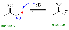 The same pattern occurs with the α-hydrogens in aldehydes and ketones... a resonance structure can be drawn with the negative charge relocated on the electronegative oxygen atom.....