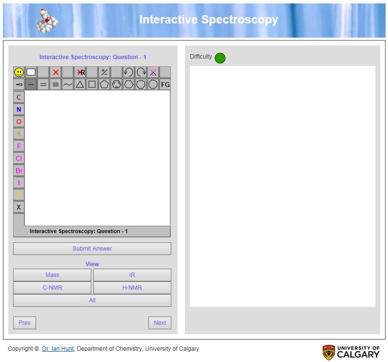 This organic chemistry learning object allows you to work through a set of spectroscopy problems using an interactive drawing tool. After each attempt, your structure is assessed and you are given feedback to help you work towards the solution. Hints are available in many cases and worked solutions are provided.