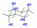 | Axial | A position on a chair cyclohexane in which the bond to the ring is perpendicular to the average plane of the ring (i.e. pointing towards the poles). | ![]() |