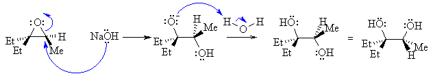 Even though we have not yet seen all ot these reactions, given that you have the structure of the reactants and the products, you should be able to draw a mechanism to show the formation of the product based on what you know from earlier chapters. If this reaction were SN1 then we would have loss of stereochemistry due to the carbocation intermediate. If the reaction were simple SN2, then there should have been inversion....one way to get retention is to have two inversions.... So if the HO- is not a nucleophile, then it reacts as a base, generating the alkoxide, RO-, another potential nucleophile. This reacts SN2 fashion intramolecularly to displace the Cl- with inversion, giving an epoxide.