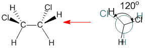 The torsional angle between the chlorine atoms is 120 degrees in this eclipsed conformation.