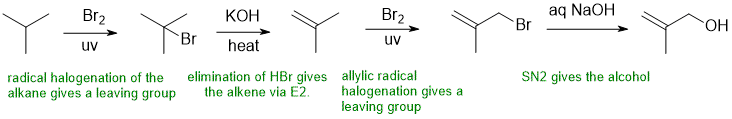 Answers to the synthesis problems are given below. These answers have been selected as they are short but there are probably other reasonable / alternative solutions ..... Of course they are based on the reactions covered in the Fall semester !