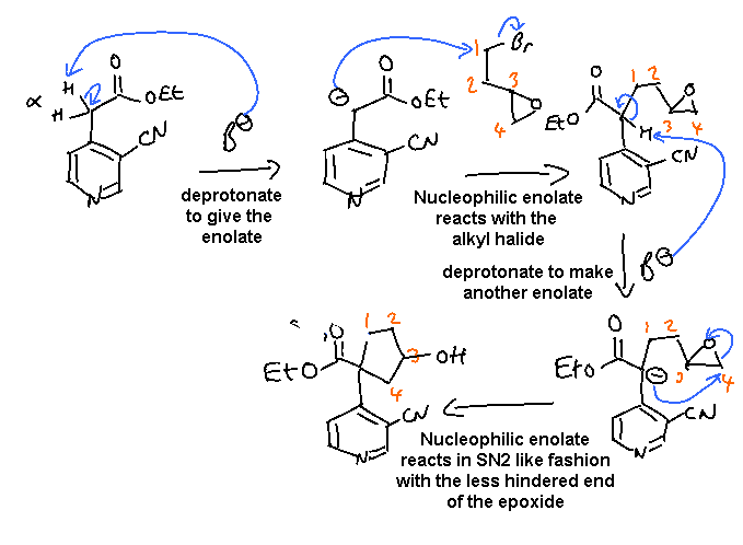 an epoxide as the electrophile (note: it could also be drawn as reaction of