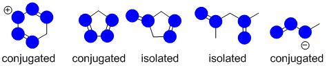 Conjugation requires an extended pi system (at least 3 atoms) where the pi systems can interact